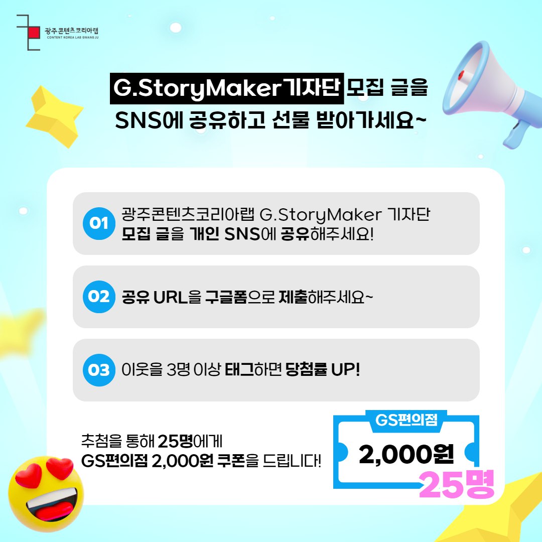 ① 광주콘텐츠코리아랩 G.StoryMaker 기자단 지원서 작성해서