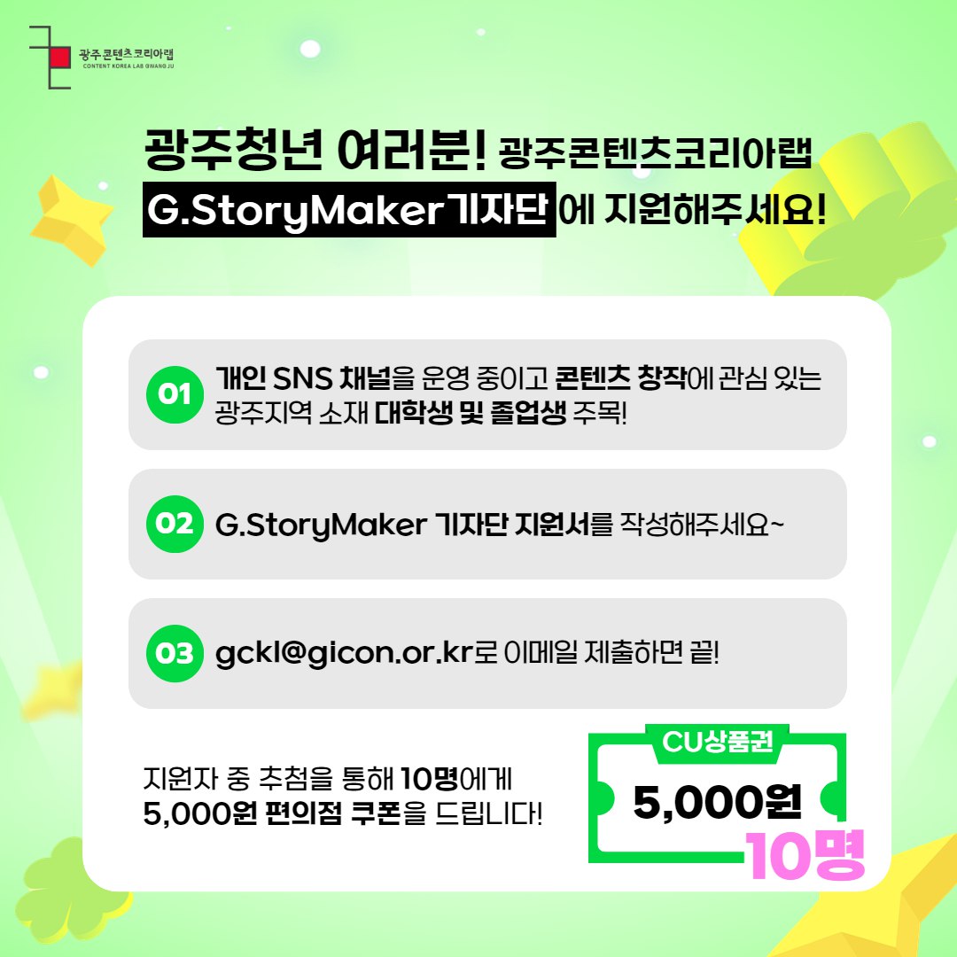 광주콘텐츠코리아랩 G.StoryMaker 대학생 서포터즈 기자단 10기 지원 이벤트