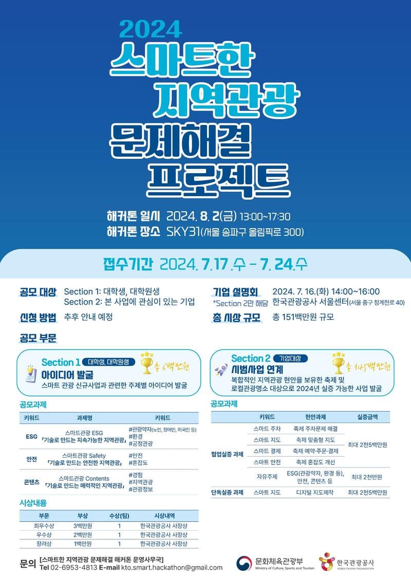 지역관광에 관심 있는 대학(원)생 및 기술기업을 위한 해커톤입니다.