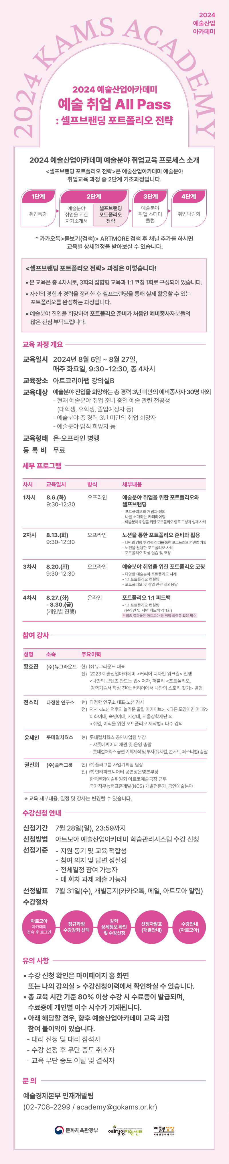 2024 예술산업아카데미 <예술취업 All Pass: 셀프브랜딩 포트폴리오 전략> 수강생 모집