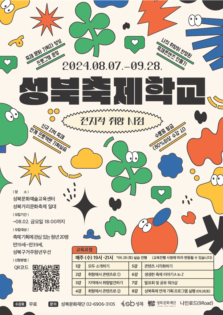 ■ 지원 방법 : 온라인 신청, 신청링크주소 http://bit.ly/2024성북축제학교