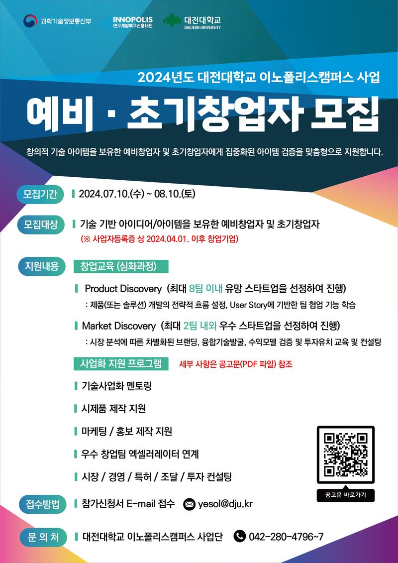 ● 문의처 : 대전대학교 이노폴리스캠퍼스 사업단 (042-280-4796~7)