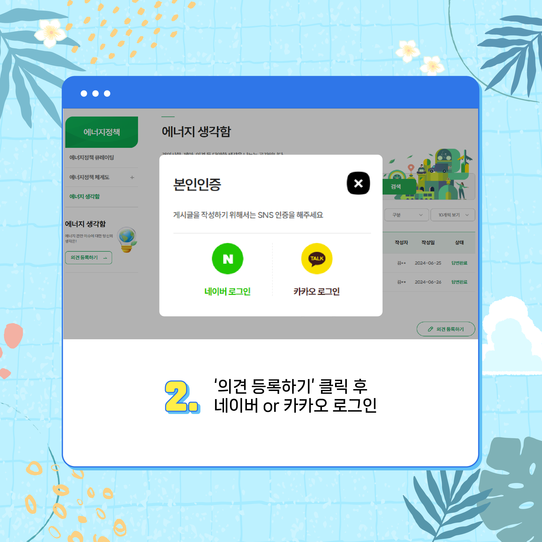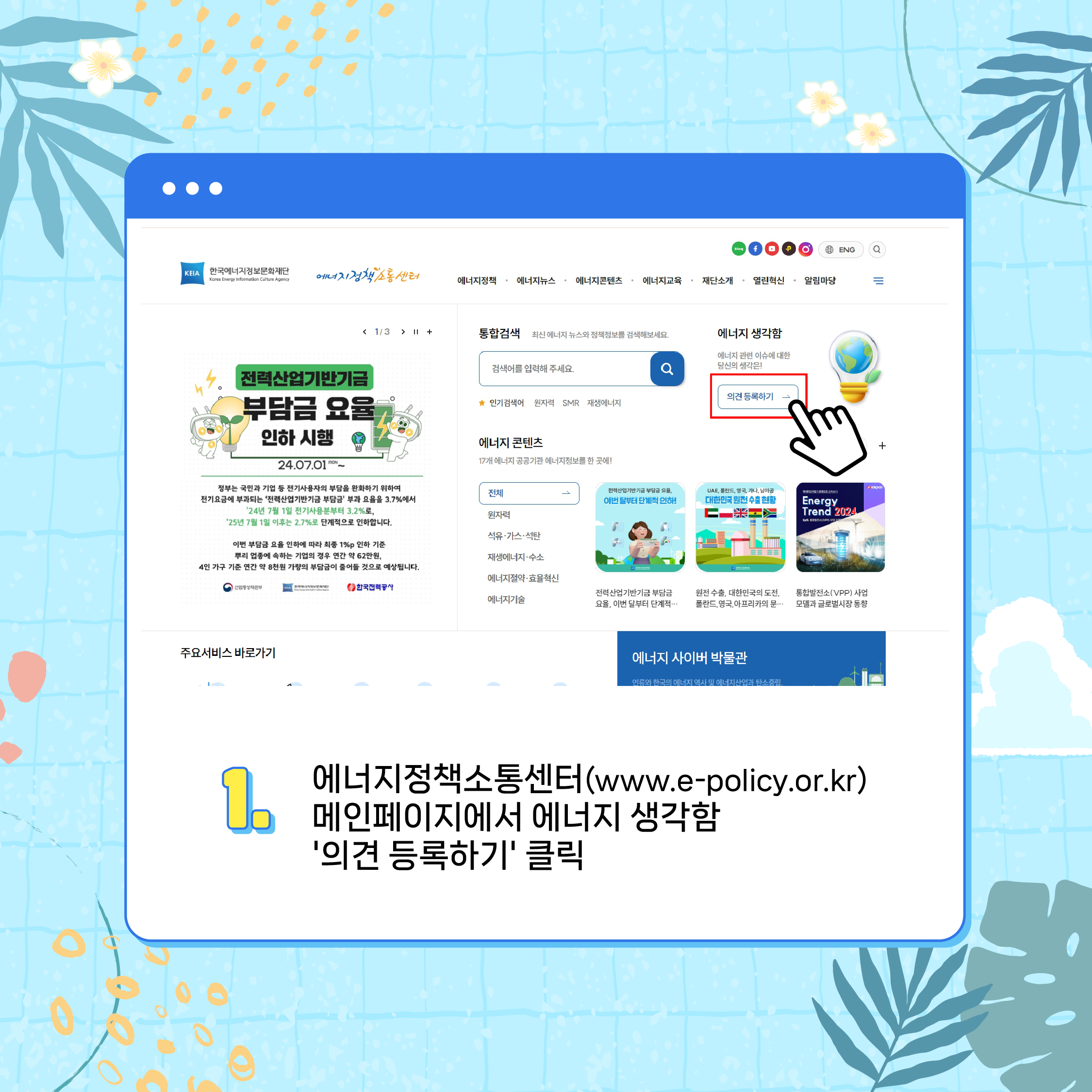 메인페이지에서 에너지 생각함 ‘의견 등록하기’ 클릭.