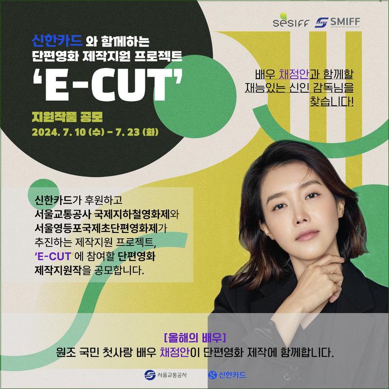 신한카드가 후원하고 서울교통공사 국제지하철영화제와 서울영등포국제초단편영화제가 추진하는 제작지원 프로젝트, ‘E-CUT’에 참여할 단편영화 제작지원작을 공모합니다.