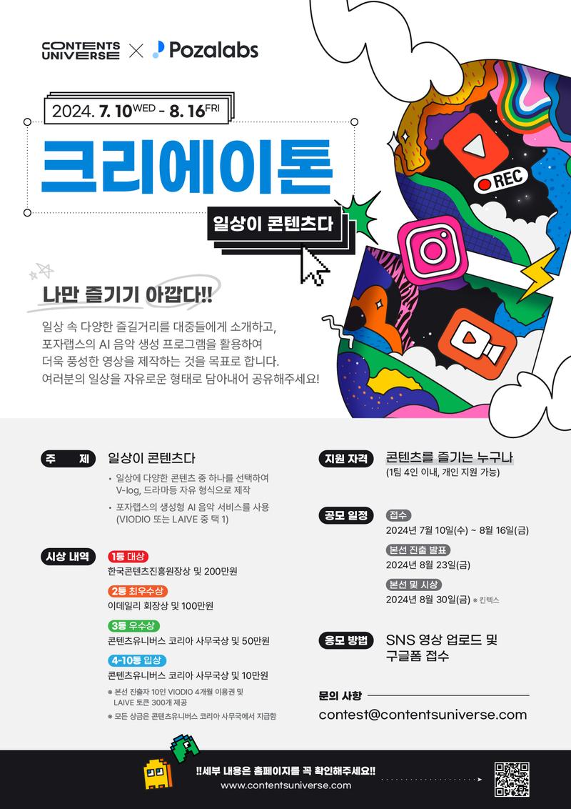 일상이 콘텐츠다 *콘텐츠 분야 제한 없음