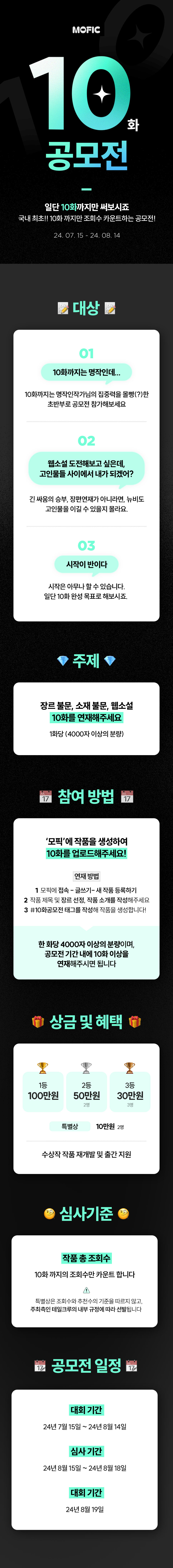 : 일단 10화까지만 써보시죠. 국내 최초!! 10화 까지만 조회수 카운트하는 공모전 (24.07.15~24.08.14)