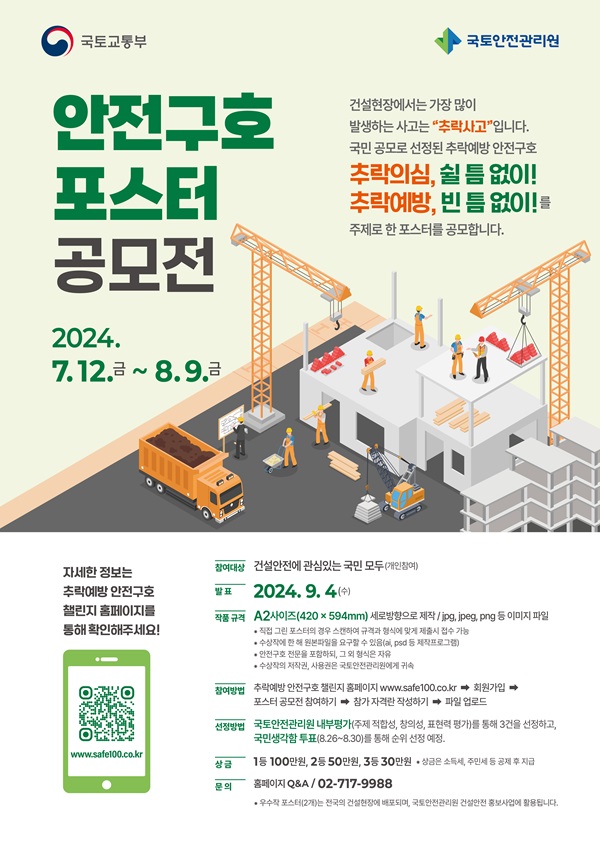 - 상위 2개작(대상, 최우수상)은 수정·편집되어 국토안전관리원의 건설안전 대국민 홍보사업에 활용될 예정임