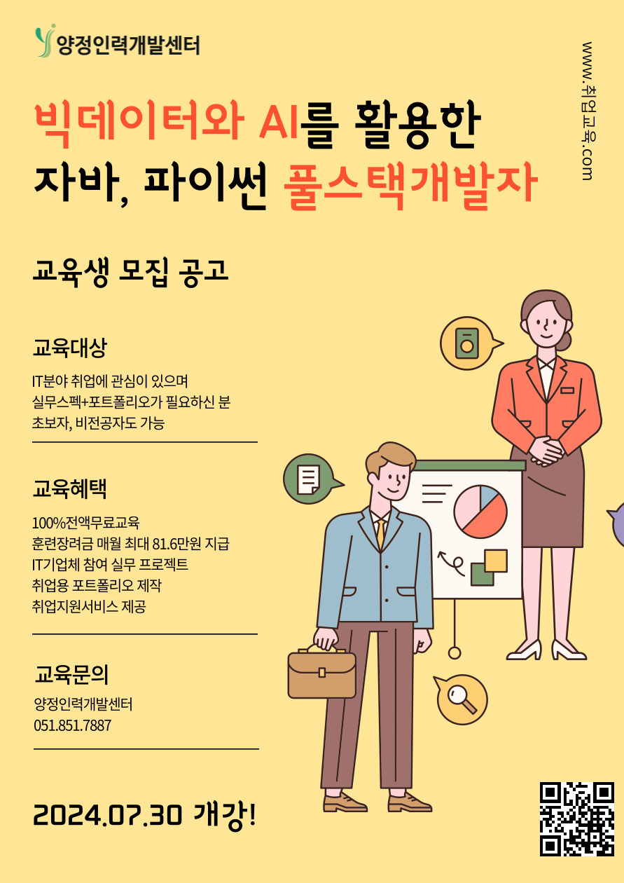 - 교육명 : 빅데이터와 AI를 활용한 자바, 파이썬 풀스택 개발자