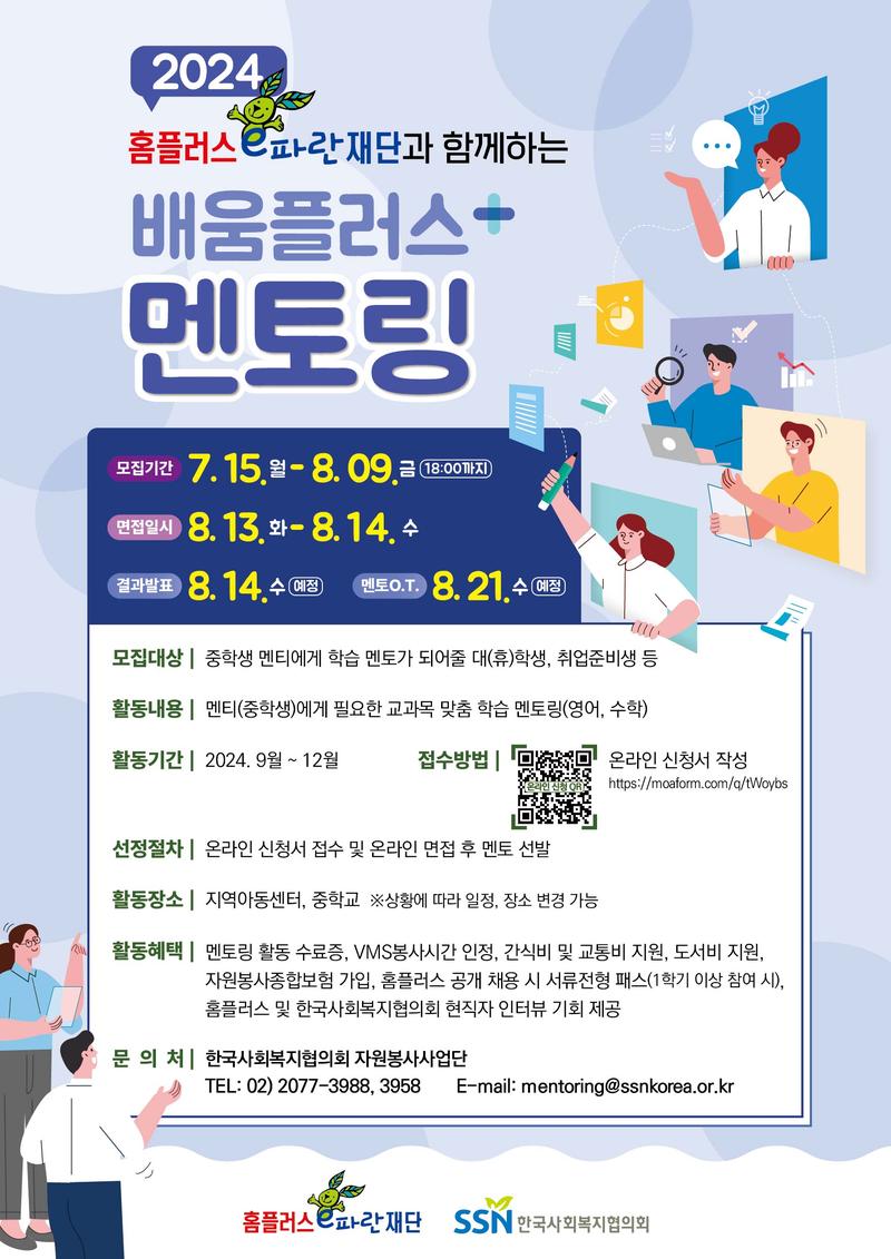홈플러스 e파란재단과 함께하는 <배움플러스 멘토링>에 참여할 멘토를 모집합니다!