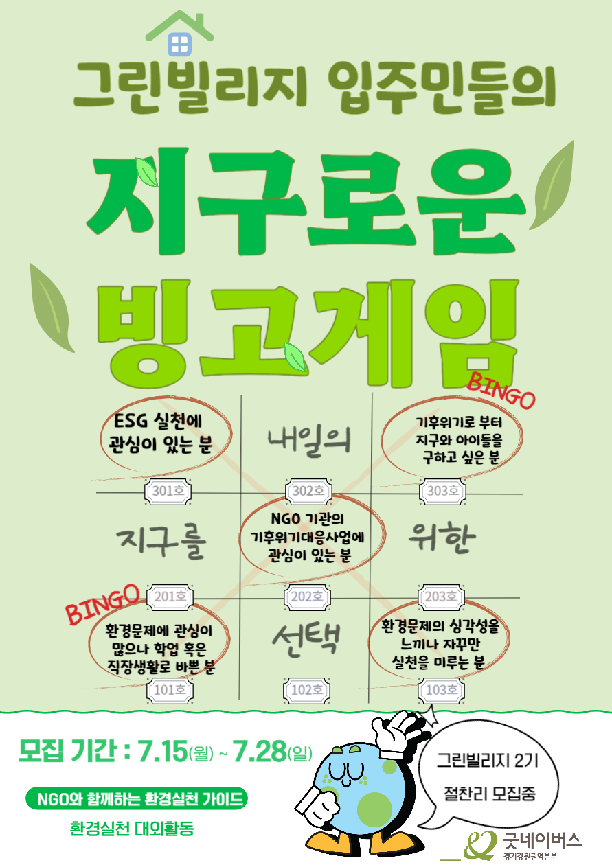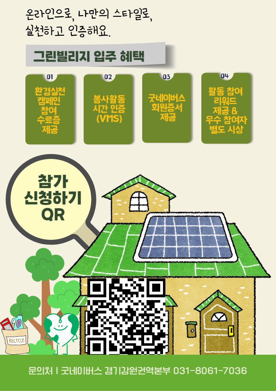 ㄴ> 더이상 미루지말고 지금 당장 그린빌리지에 입주하여 함께 환경실천을 시작해보세요!
