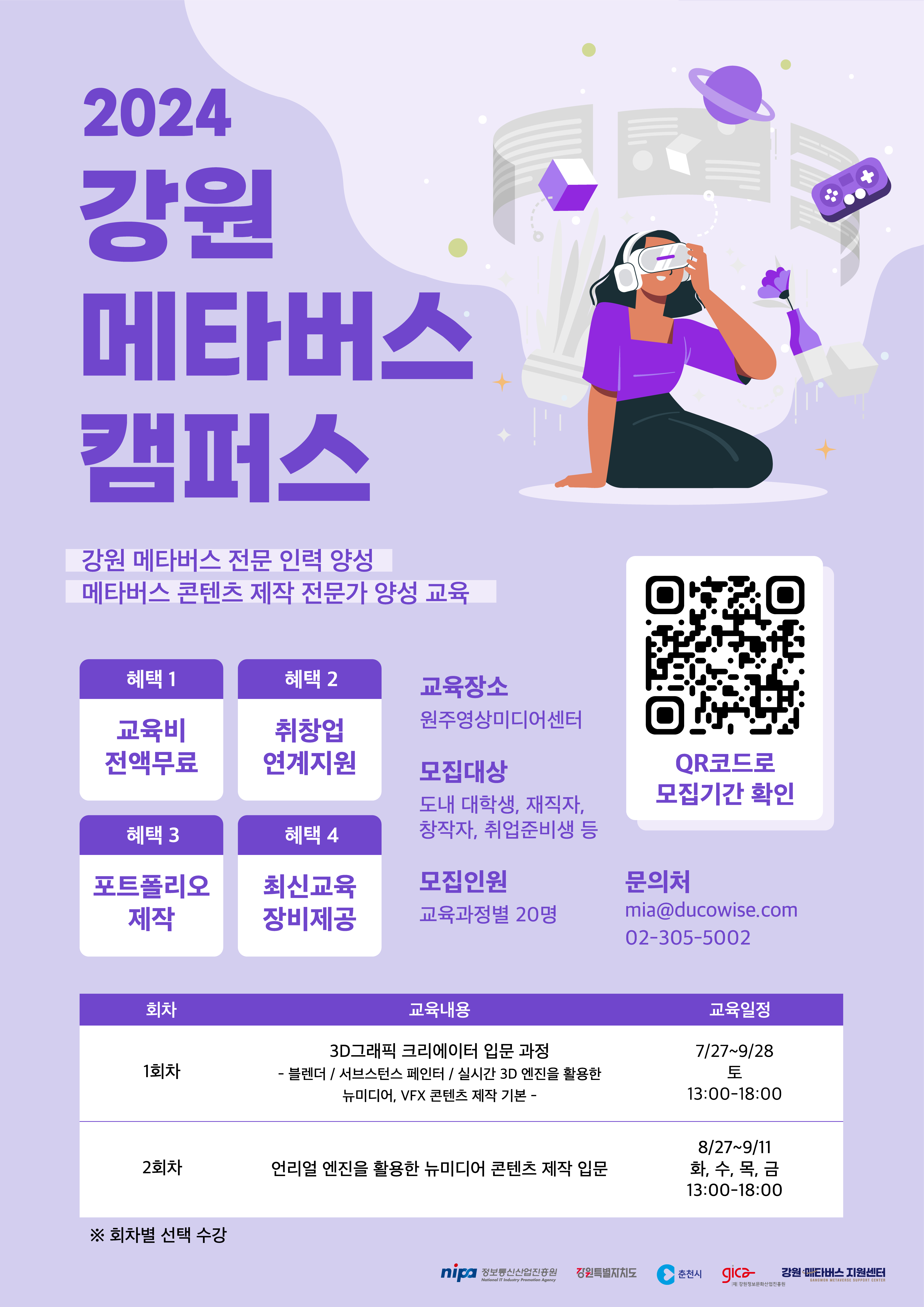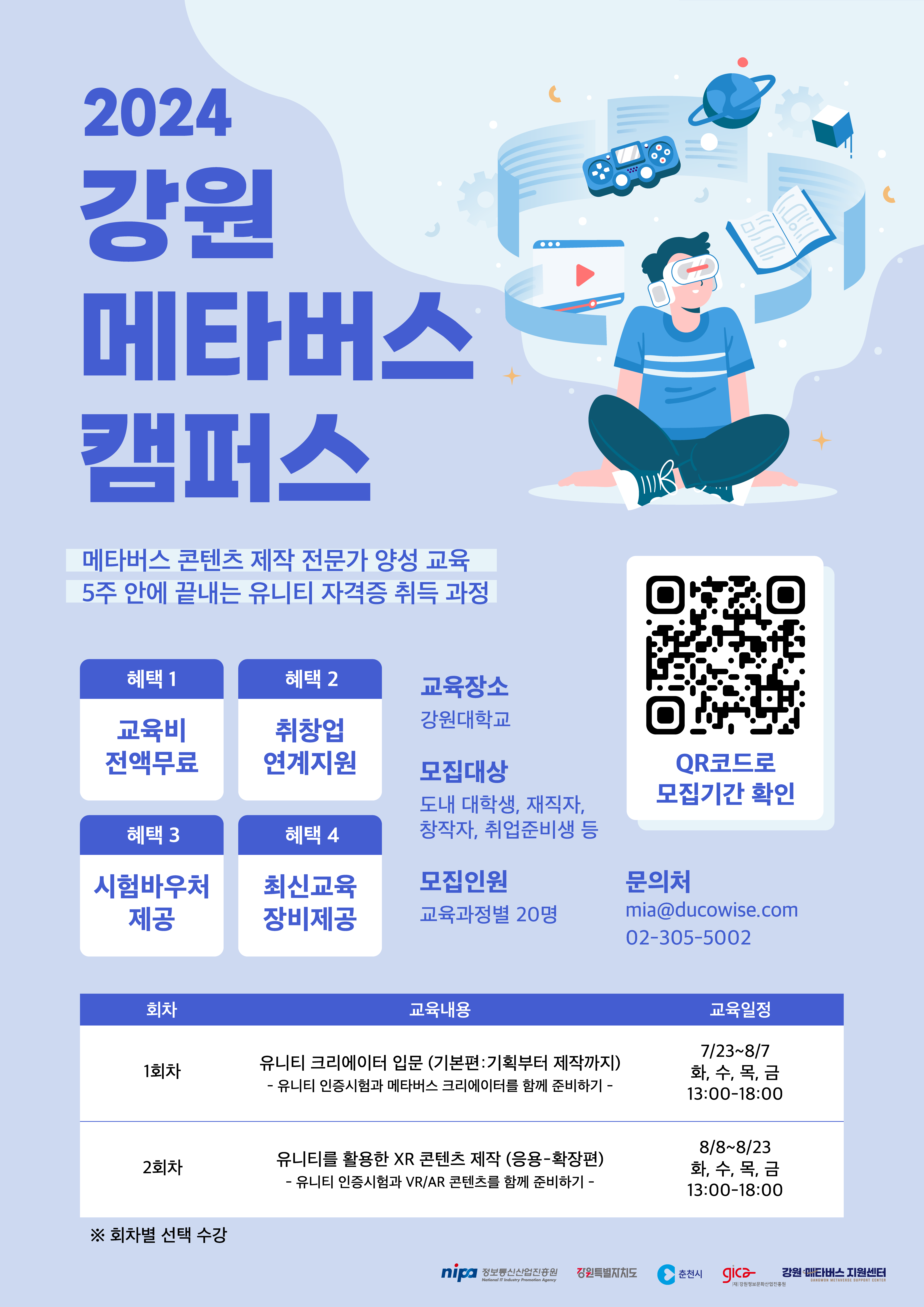 강원도 내 대학생, 재직자, 창작자, 취업준비생 (각 과정당 20명, 중복 신청 가능)