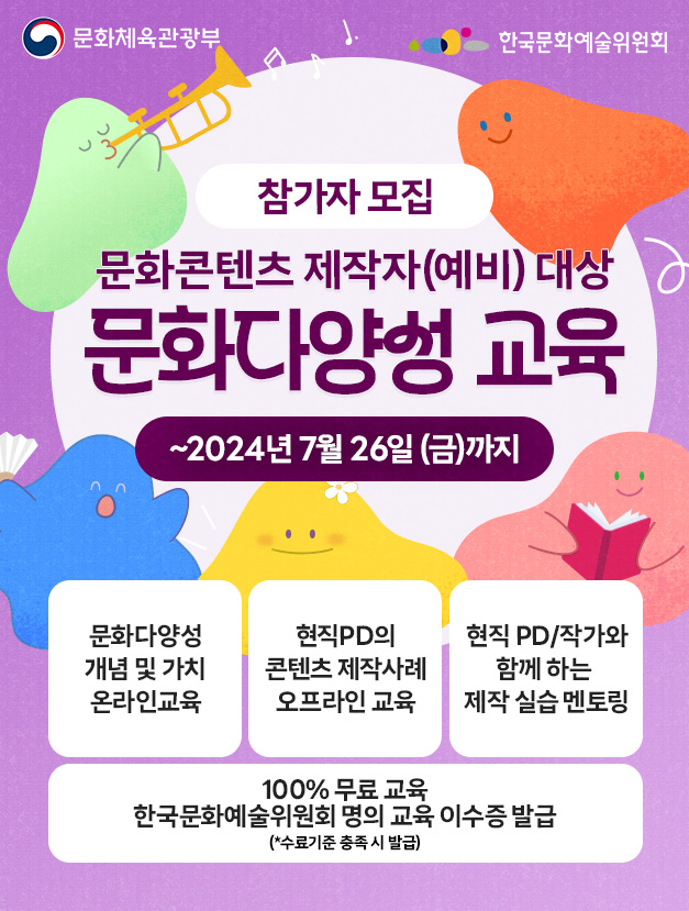 ■ 참가특전 : 한국문화예술위원회 명의 교육 이수증 발급