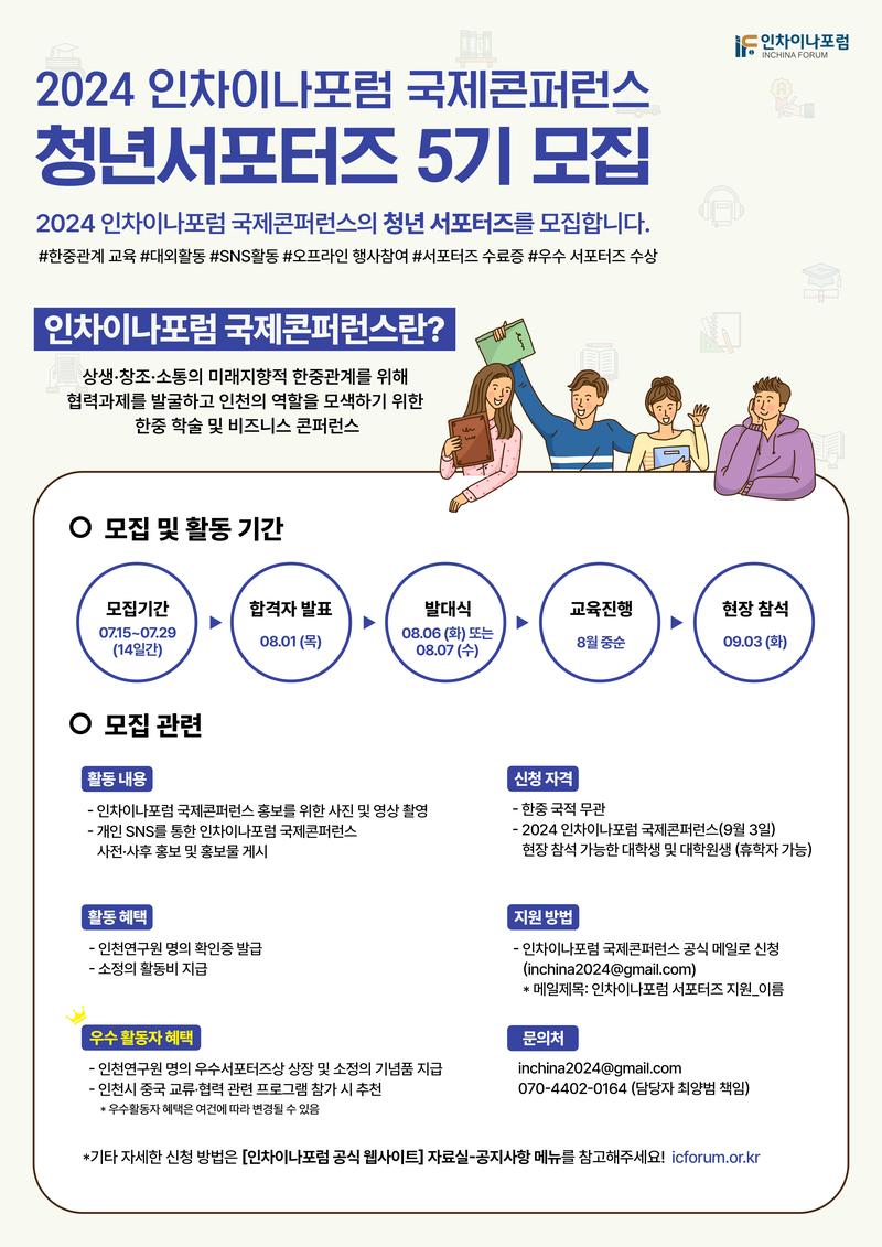 2024 인차이나포럼 청년서포터즈 5기를 모집합니다. 많은 청년들의 관심과 참여 부탁드립니다!