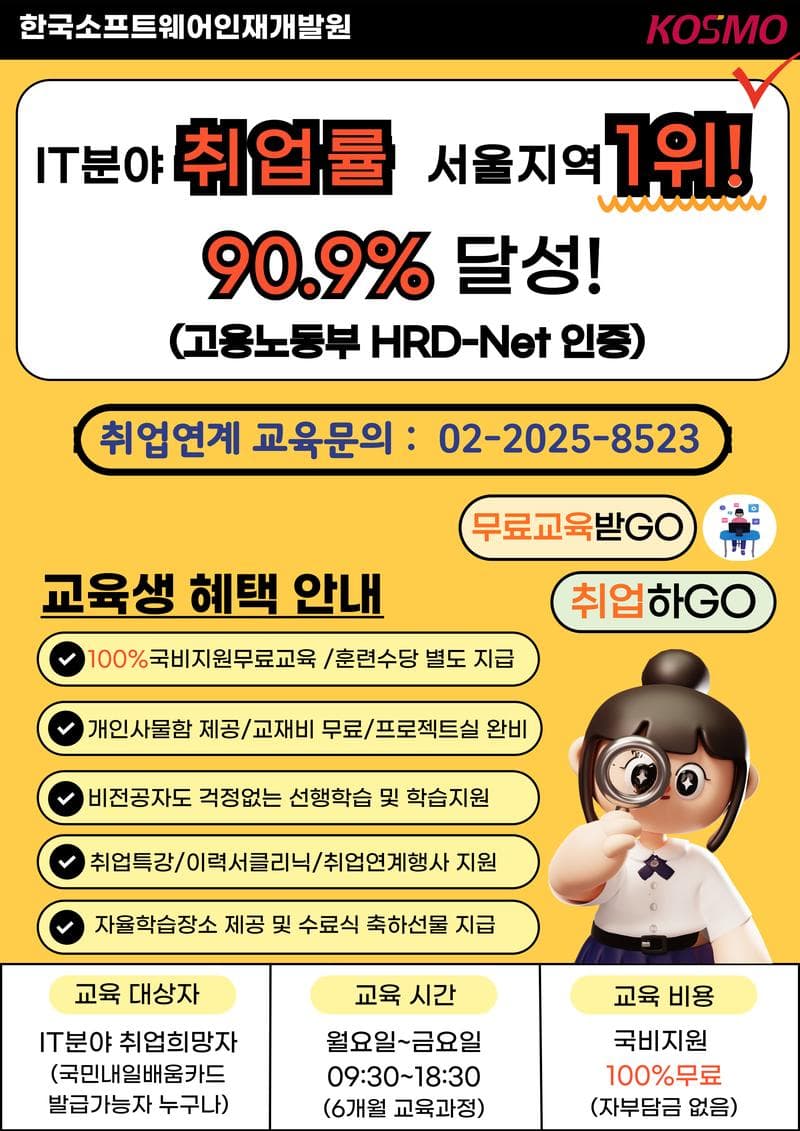 - 홈페이지 : https://www.ikosmo.co.kr (한국소프트웨어인재개발원)
