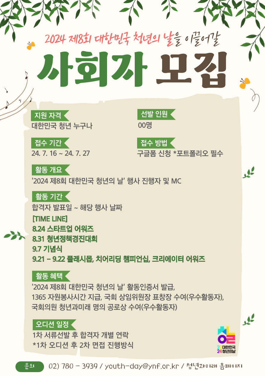 📢2024 제8회 대한민국 청년의 날 사회자 모집📢
