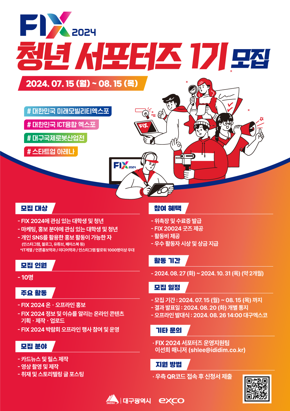 FIX 2024를 홍보하는데에 같이 영향력을 펼칠 청년 서포터즈를 모집합니다!