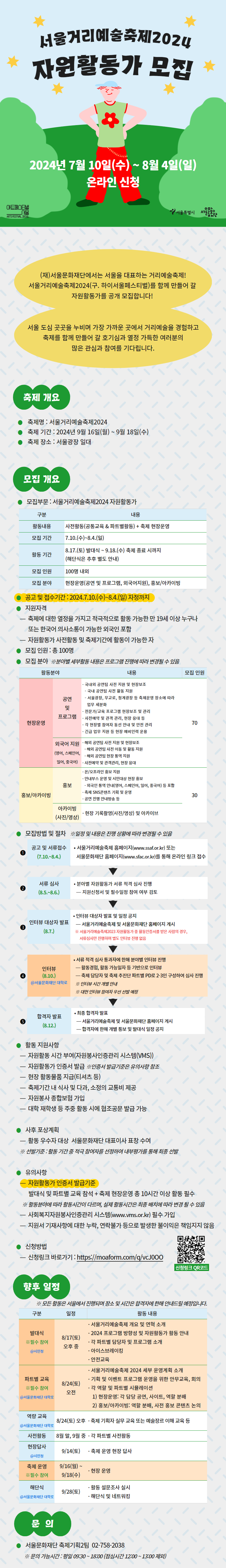 ○ 모집부문 : 서울거리예술축제2024 자원활동가