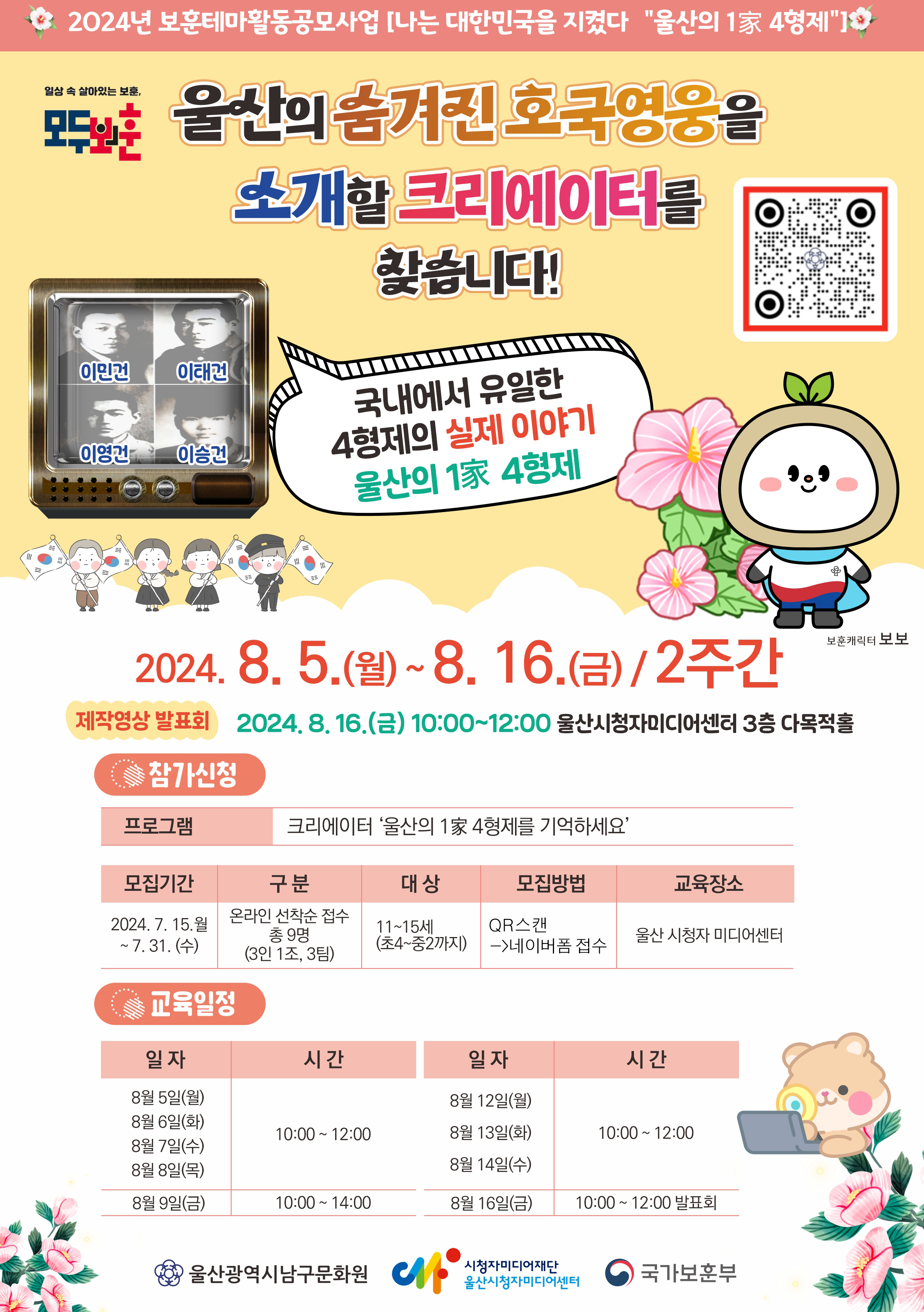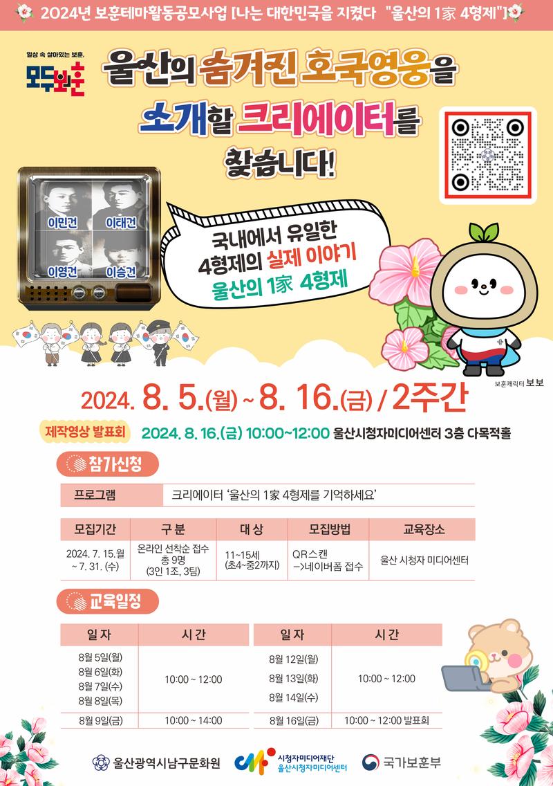제작영상 발표회 2024.8.16.(금) 10:00 ~ 12:00 울산시청자미디어센터 3층 다목적홀