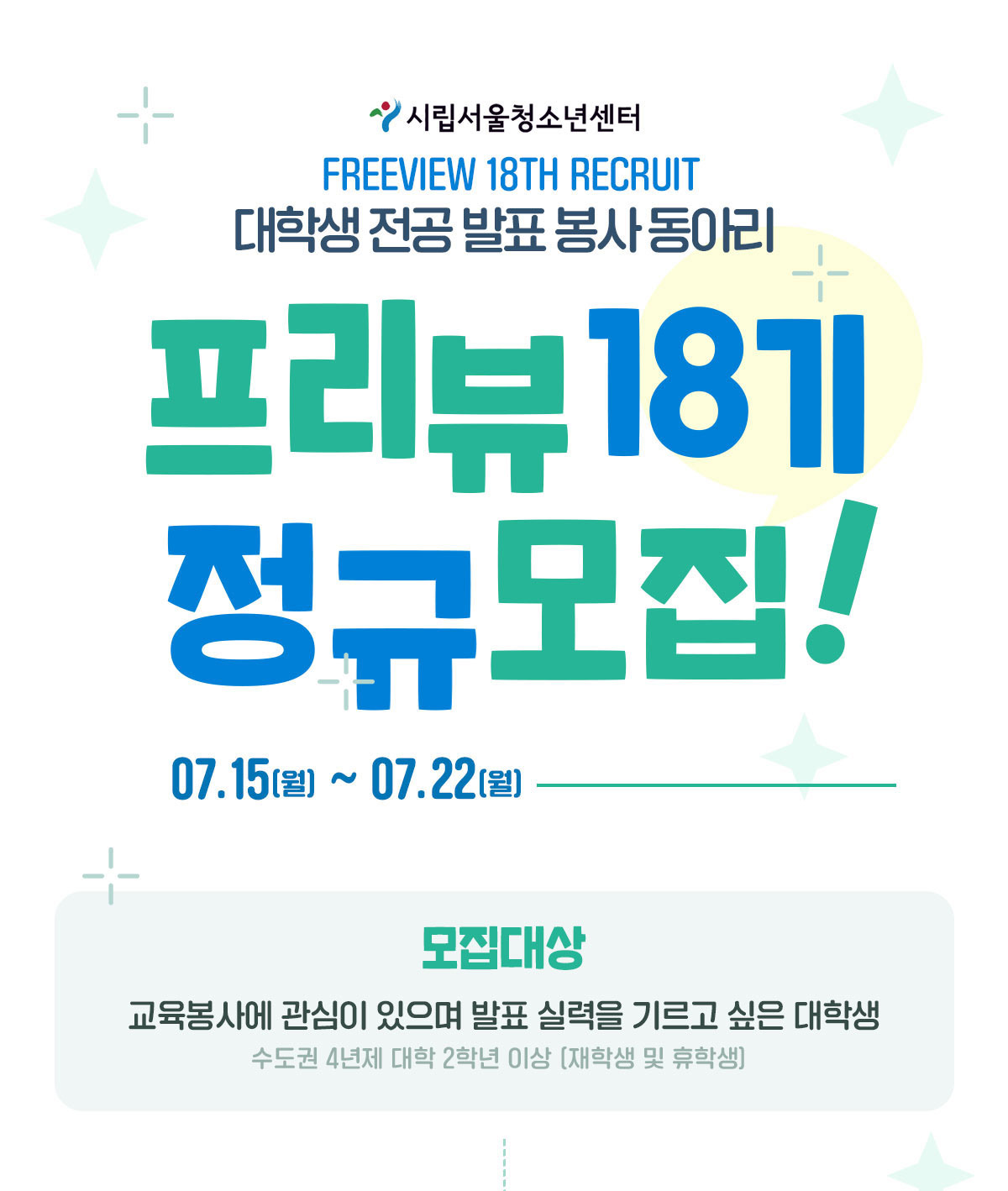시립서울청소년센터 / 대학생 전공 발표 봉사 동아리 FREEVIEW