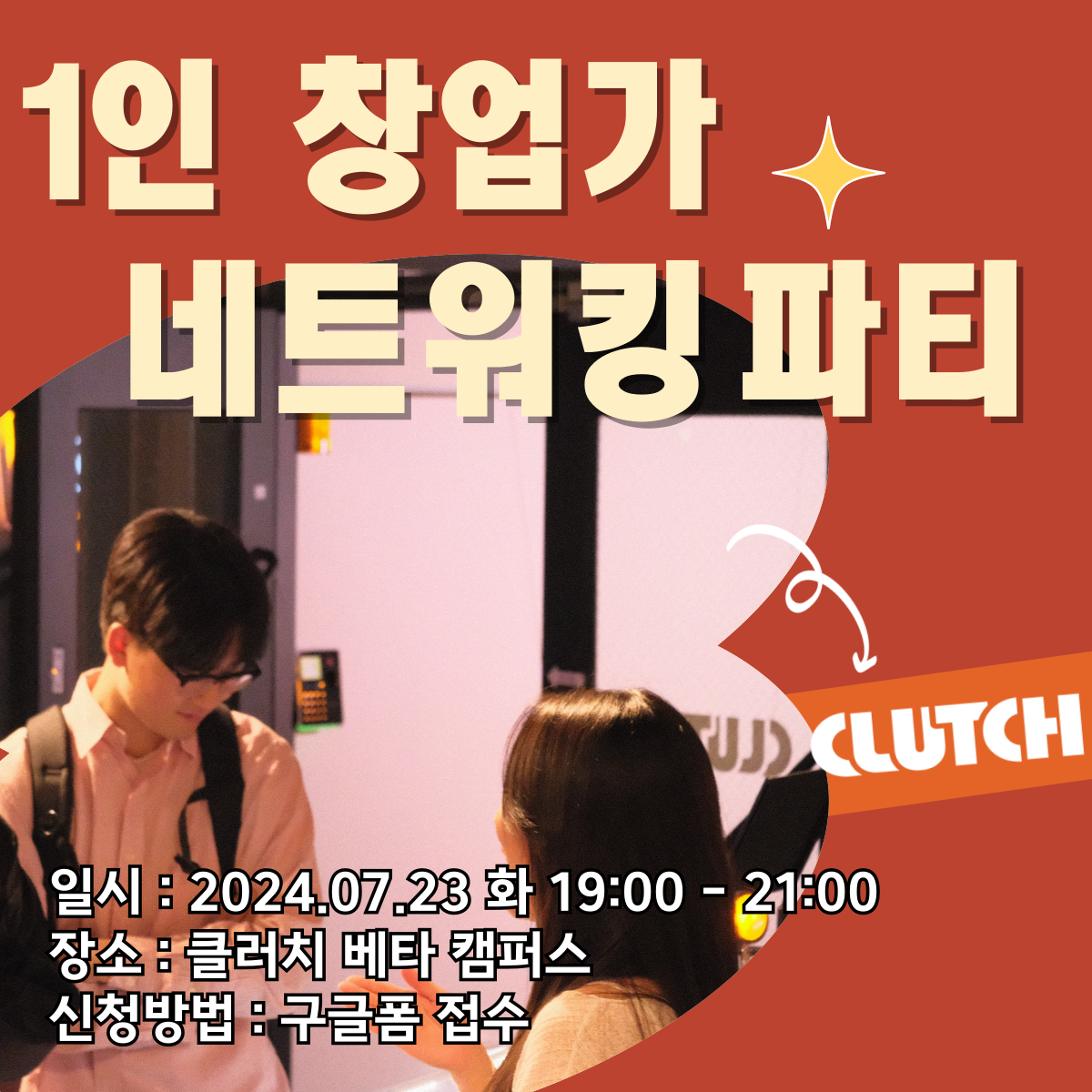 1인 창업을 계획하시는 분, 혹은 하면서 어려웠던 점을 협업을 통해 얘기하고 싶다면, 클러치 네트워킹 파티<고충을 나누는 시간>에 당신을 초대합니다.