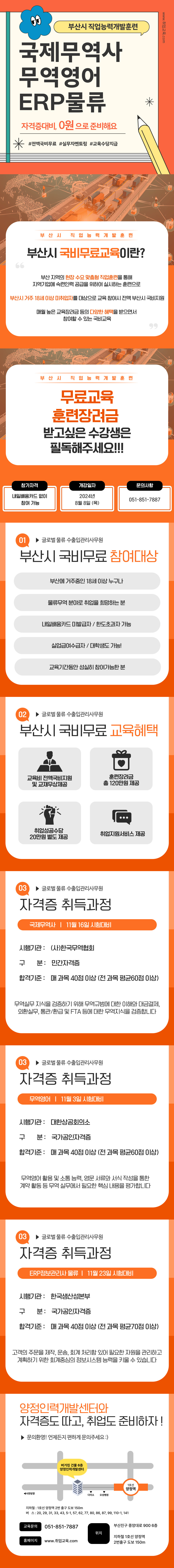 [부산광역시 주관] 전액지원 물류/무역 취업준비생 모집(국가공인자격증 취득)