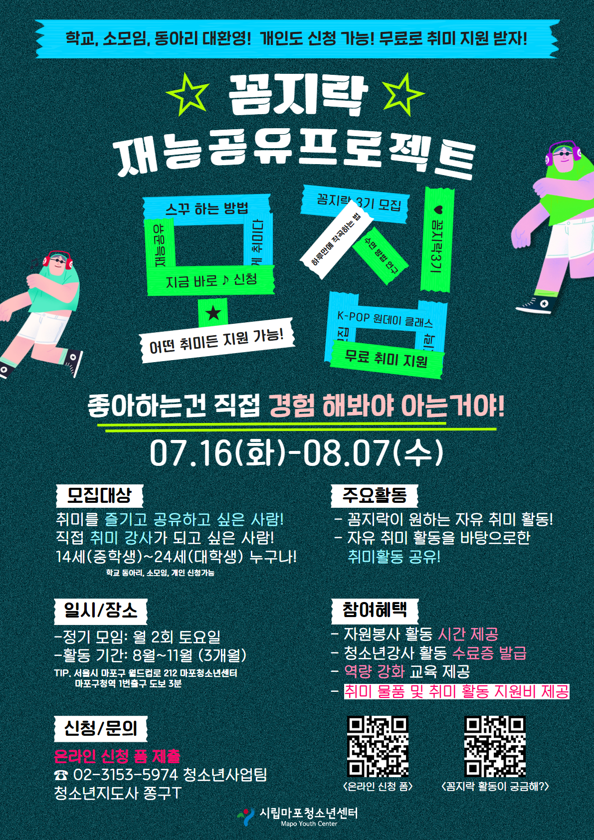 · 전화 02-3153-5974 청소년사업팀 쫑구T(김종현)