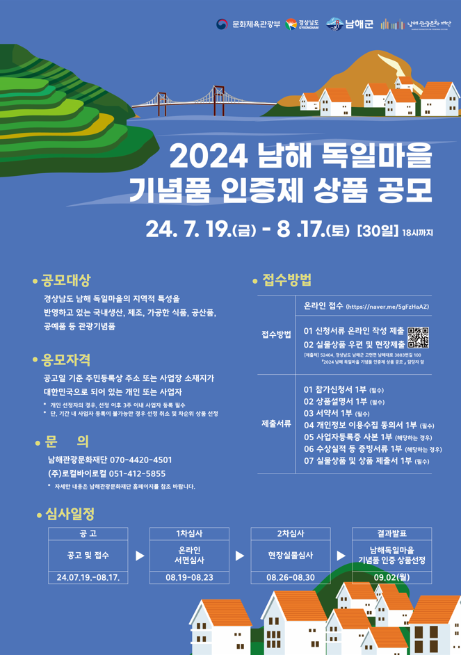 『2024 남해 독일마을 기념품 인증제 상품 공모 』 담당자 앞)