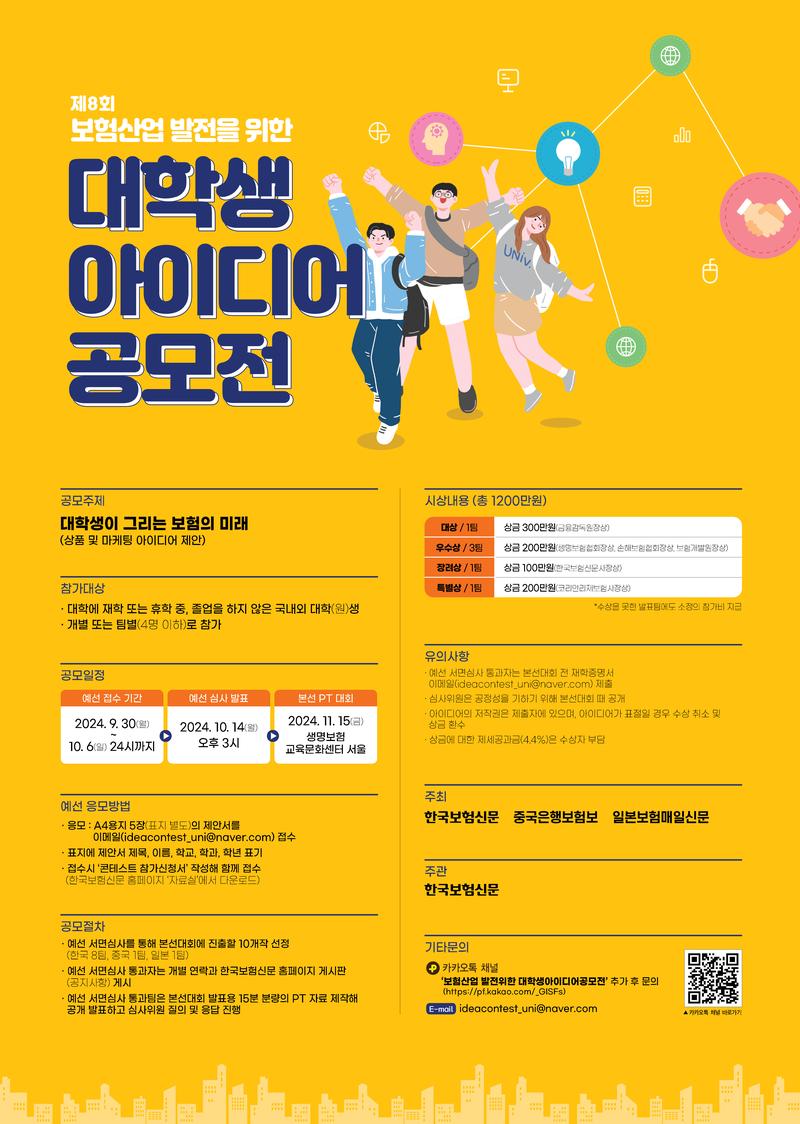- 카카오톡 채널 : ‘보험산업 발전위한 대학생아이디어공모전’ 추가 후 문의