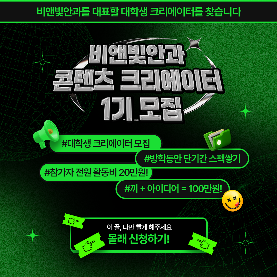 - 비앤빛안과 브랜드마케팅팀 인턴 기회 제공