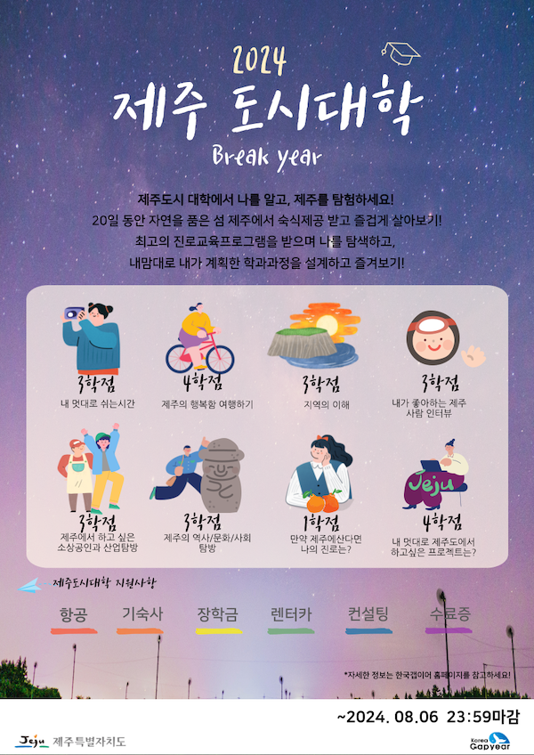 ★전액지원★ 제주 한 달 살기 도시대학 입학생 모집(~8.6. 밤 11시 59분 마감)