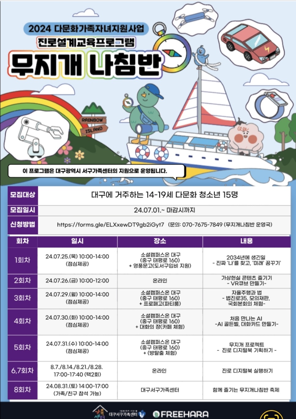 1. 프로그램 명: 2024 다문화가족자녀지원사업 진로설계교육프로그램 <무지개 나침반>