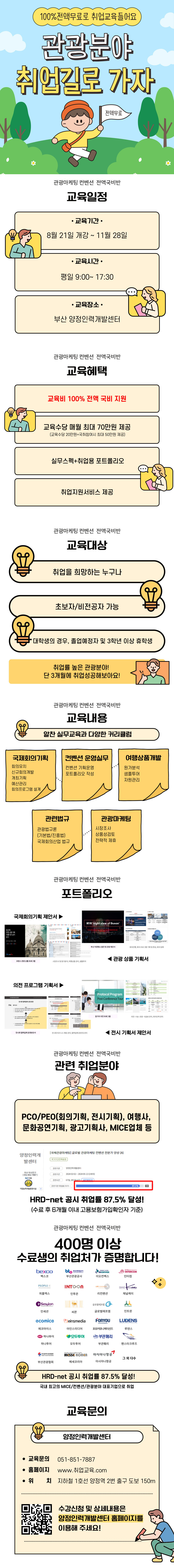 - 관광마케팅/국제회의·컨벤션/여행상품개발 등 실무 위주의 교육+취업용 포트폴리오 제작!