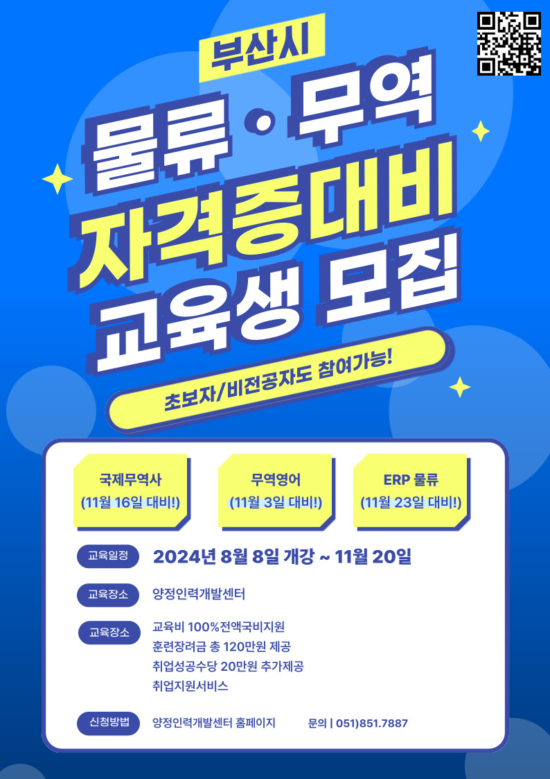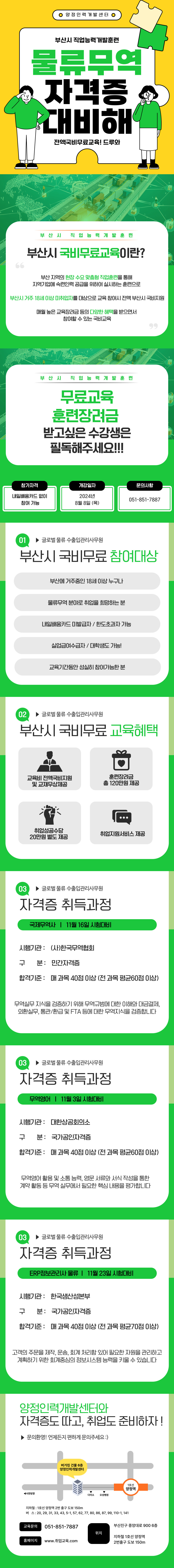 - 국제무역사, erp물류, 무역영어, 물류관리사 등의 자격증대비 교육