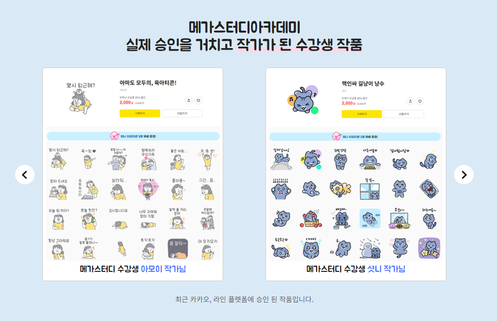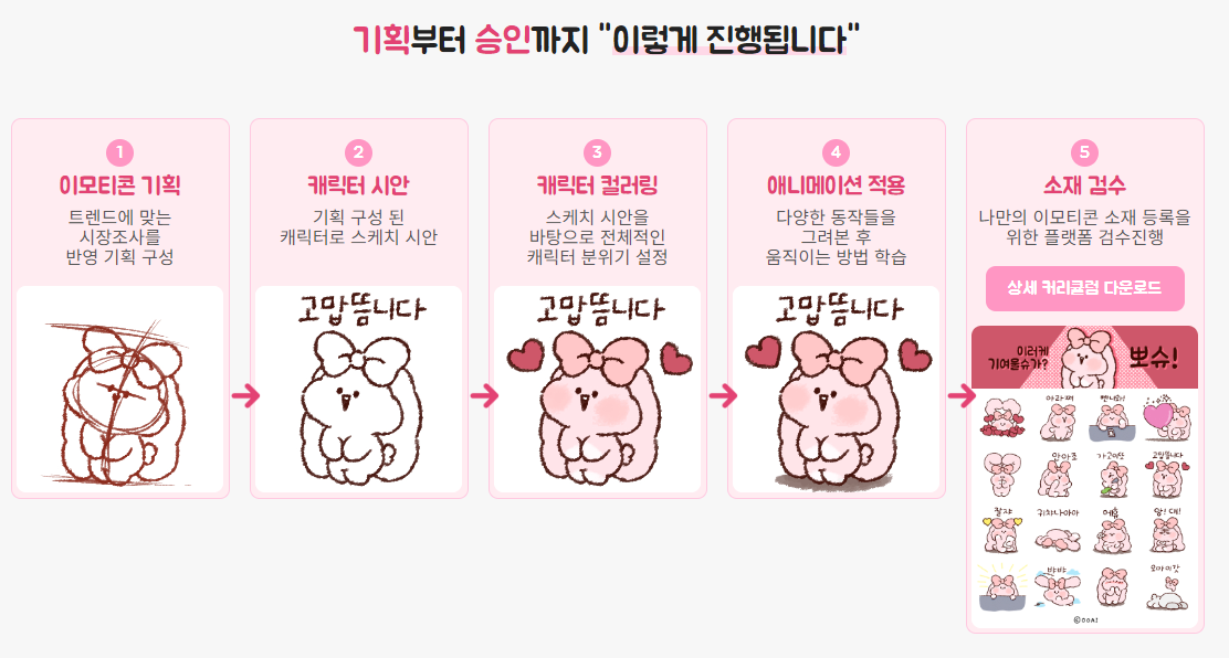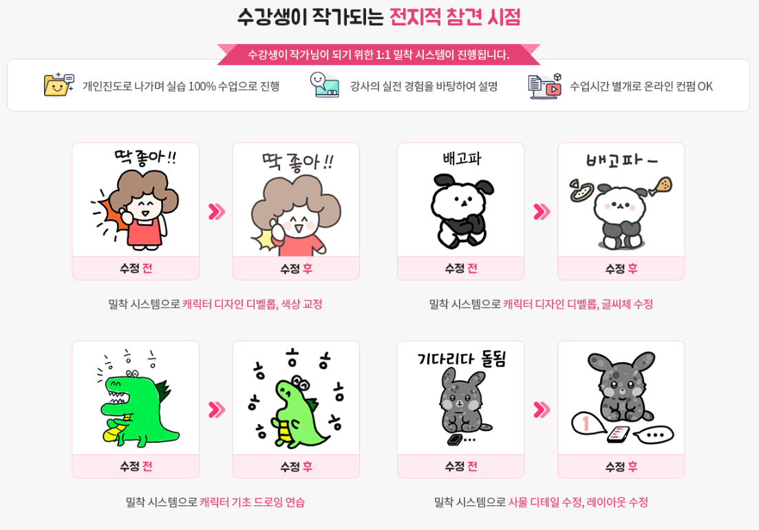 기초 단계부터 이모티콘 승인까지 자세하게 맞춤형 교육을 진행하고 있습니다.