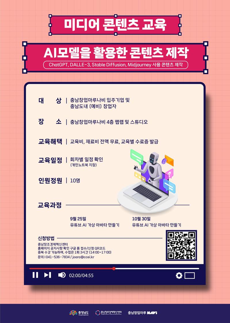 교육명 : 2024년 충남창업마루나비 AI모델을 활용한 영상 제작 교육