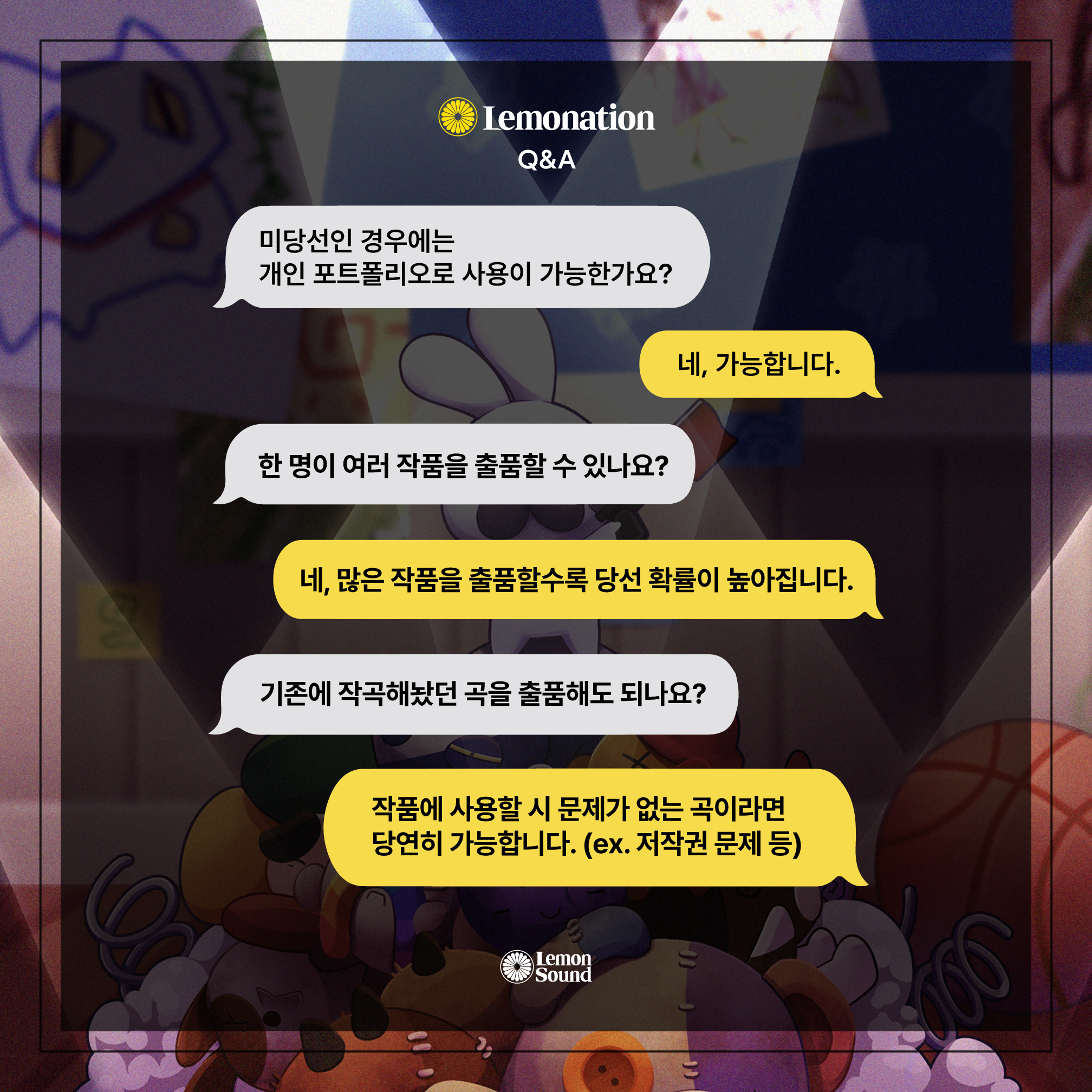 지원 자격: 무관 (개인 및 팀으로 참여 가능, 레몬사운드 홈페이지 가입 후 접수)