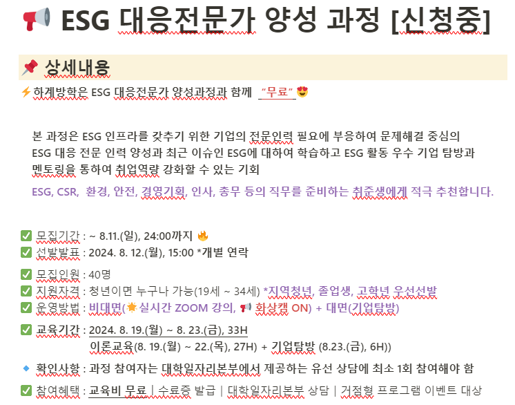 국립한밭대학교 ESG 대응 전문가 과정