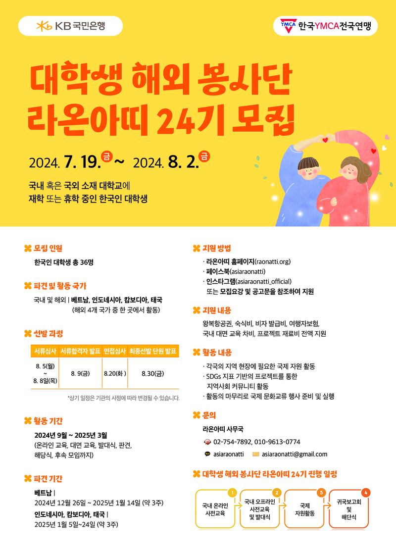 ○ 사업명 : 2024년 KB국민은행-YMCA 대학생 해외 봉사단 라온아띠 24기