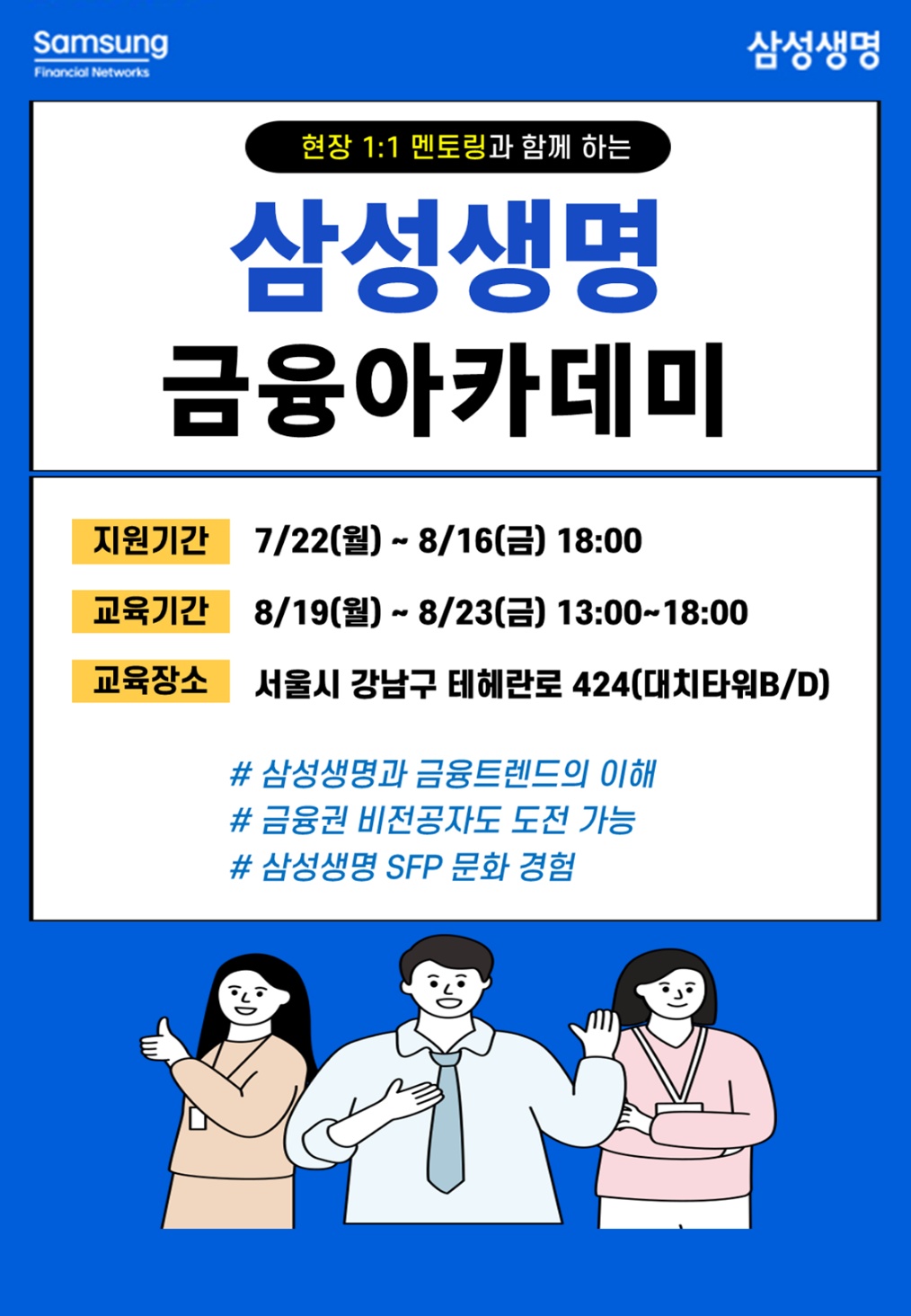교육이 탄탄한 삼성생명에서 약 5일간 진행되는 금융아카데미를 진행합니다.