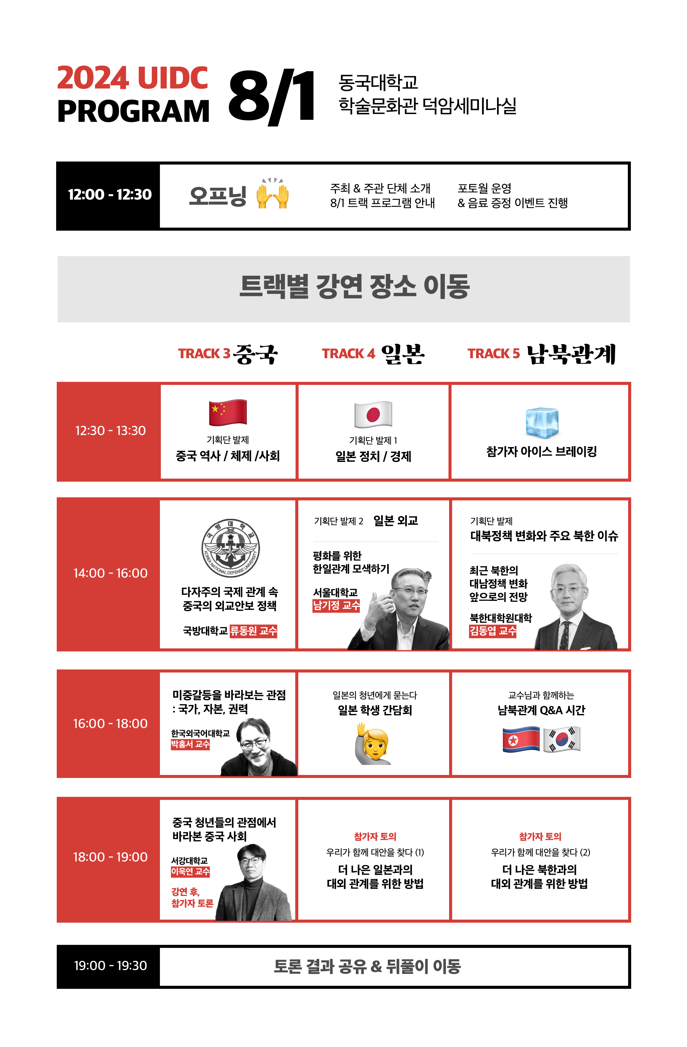 ■ 8월 1일 (2일차) 중국 / 일본 / 남북관계 트랙