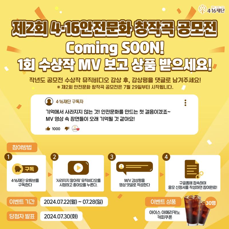 ✔ 세월호참사 10주기를 맞은 올해 2024년, 제2회 안전문화 창작곡 공모전이 7월 29일부터 진행됩니다.
