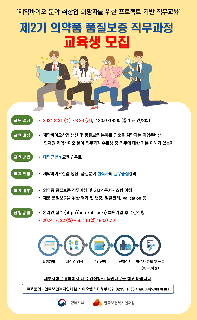 한국보건복지인재원에서 의약품 품질보증 직무과정(2기) 교육을 실시합니다!!!!!!