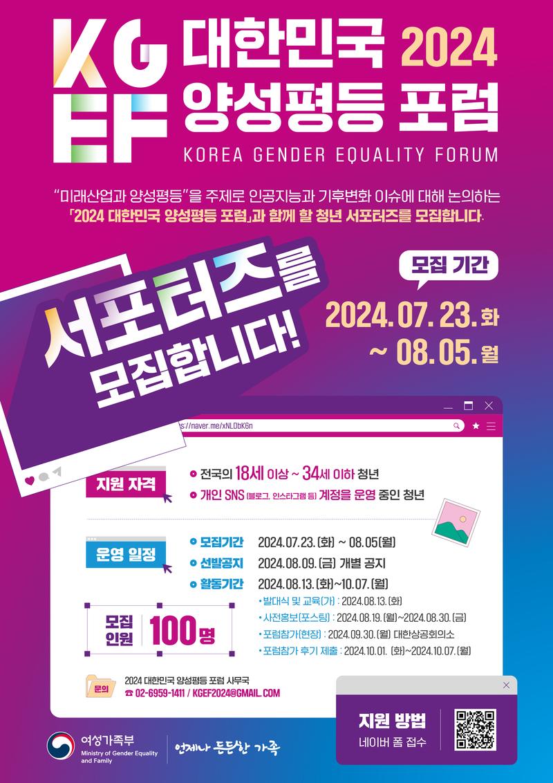 「2024 대한민국 양성평등 포럼」과 함께할 청년 서포터즈를 모집합니다.