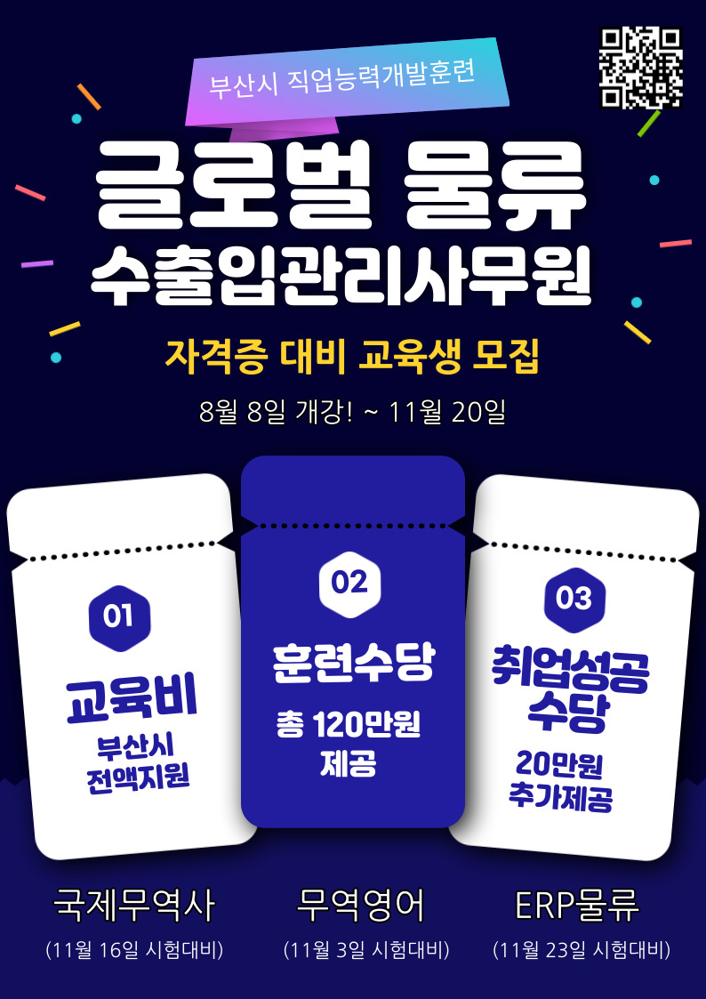 [글로벌 물류 수출입관리사무원 교육생 모집]