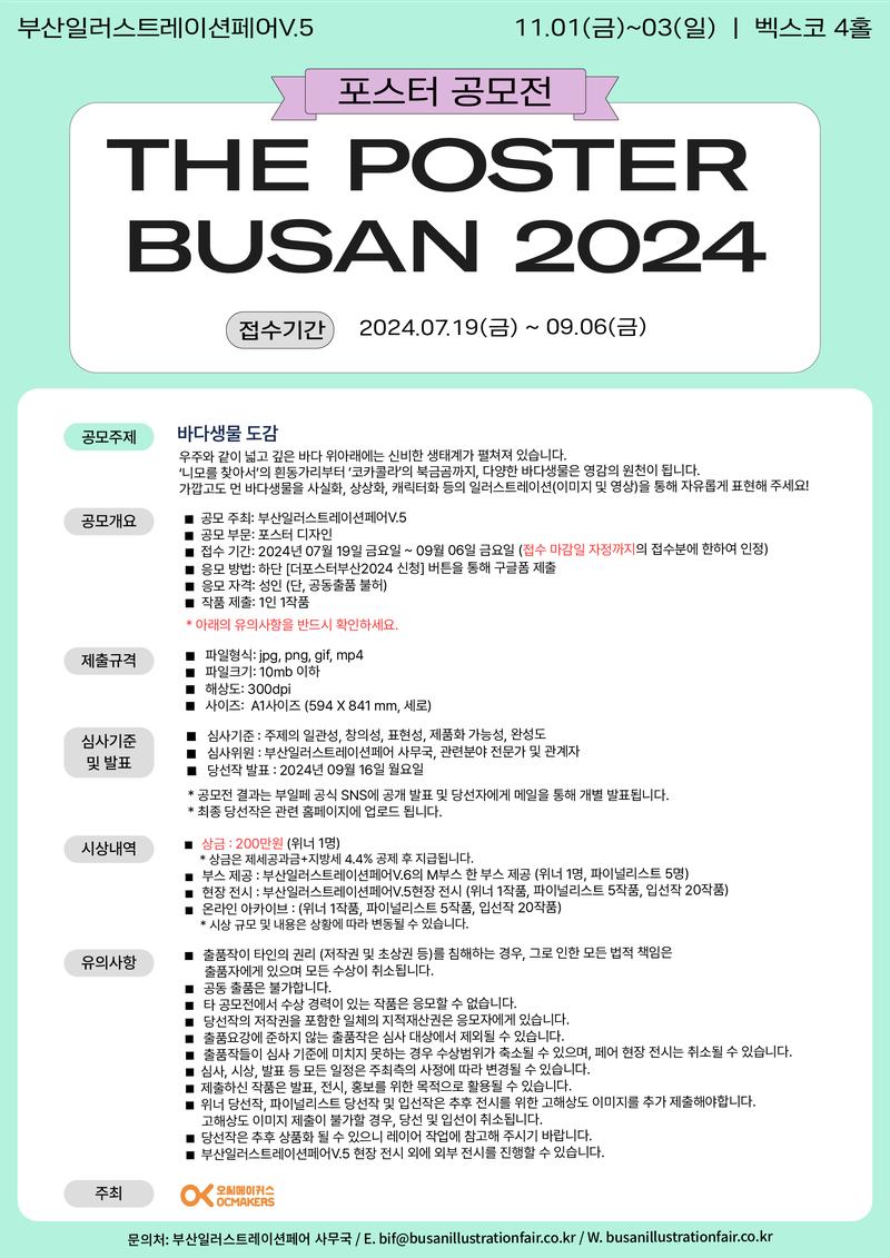 - 심사위원 : 부산일러스트레이션페어 사무국, 관련분야 전문가 및 관계자