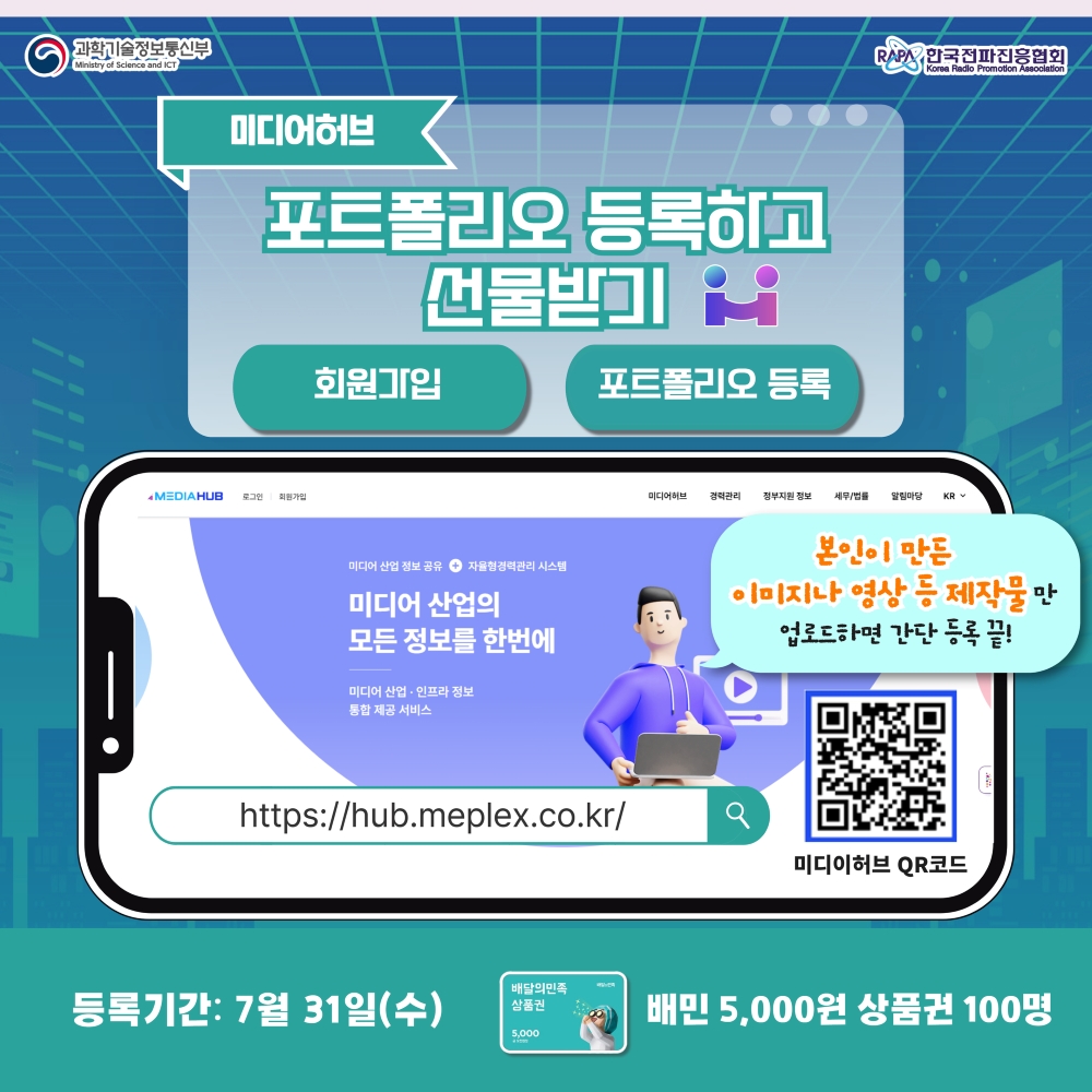 [한국전파진흥협회] ‘미디어 허브’ 포트폴리오 등록하고 선물 받아가세요!(2차 등록기간 : ~7/31)