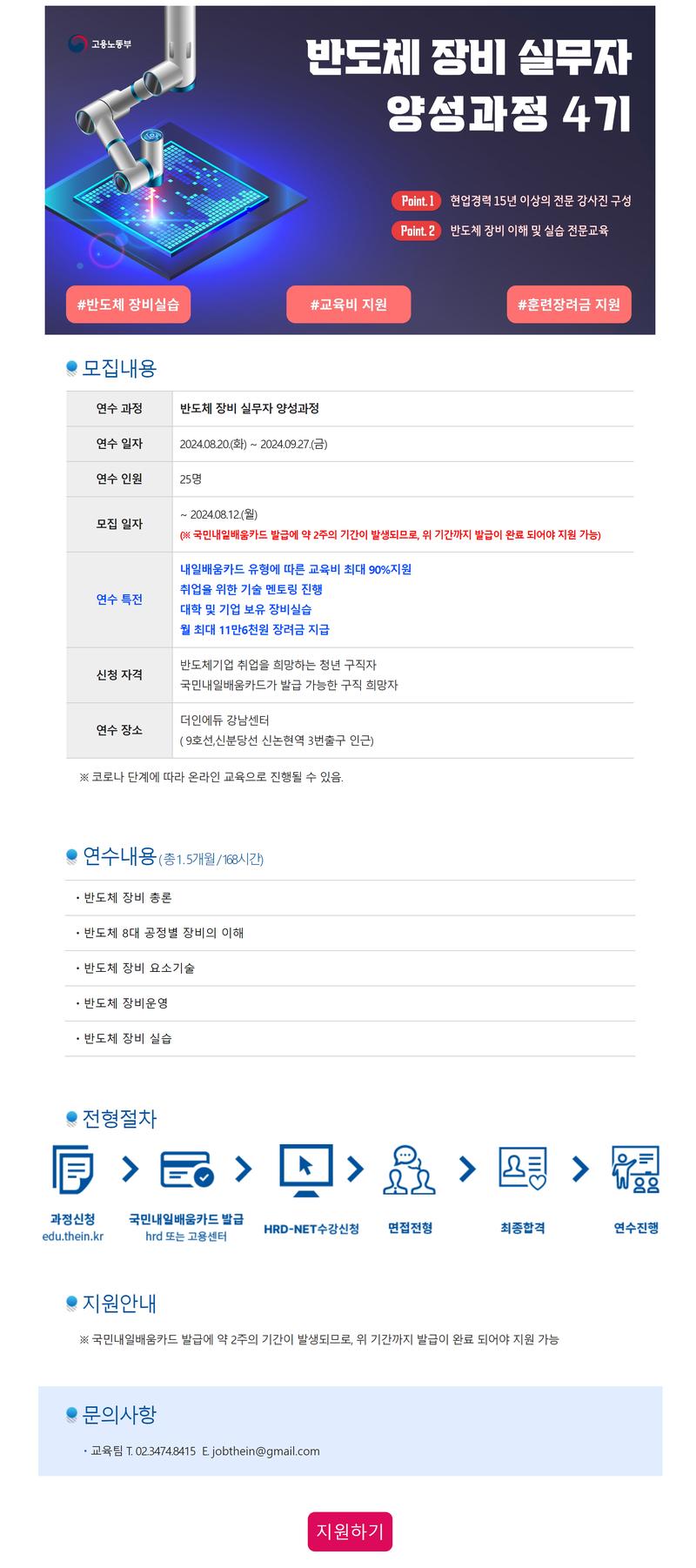 지원서 제출 -> 국민내일배움카드발급 -> HRD-NET 수강신청 -> 면접전형 -> 최종합격