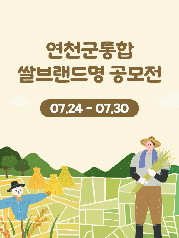 - 쌀브랜드명 공모를 통해 연천쌀 통합브랜드 명칭을 선정하고 연천쌀의 경쟁력과 인지도 제고를 위한 BI 및 포장디자인 등 개발에 참고·활용 예정입니다.