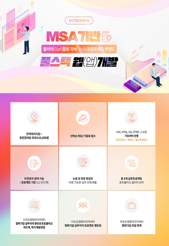 훈련과정 - [K-Digital] MSA기반 플러터(Dart)활용 자바(JAVA)프론트엔드 백엔드 풀스택 웹(앱)개발자 과정