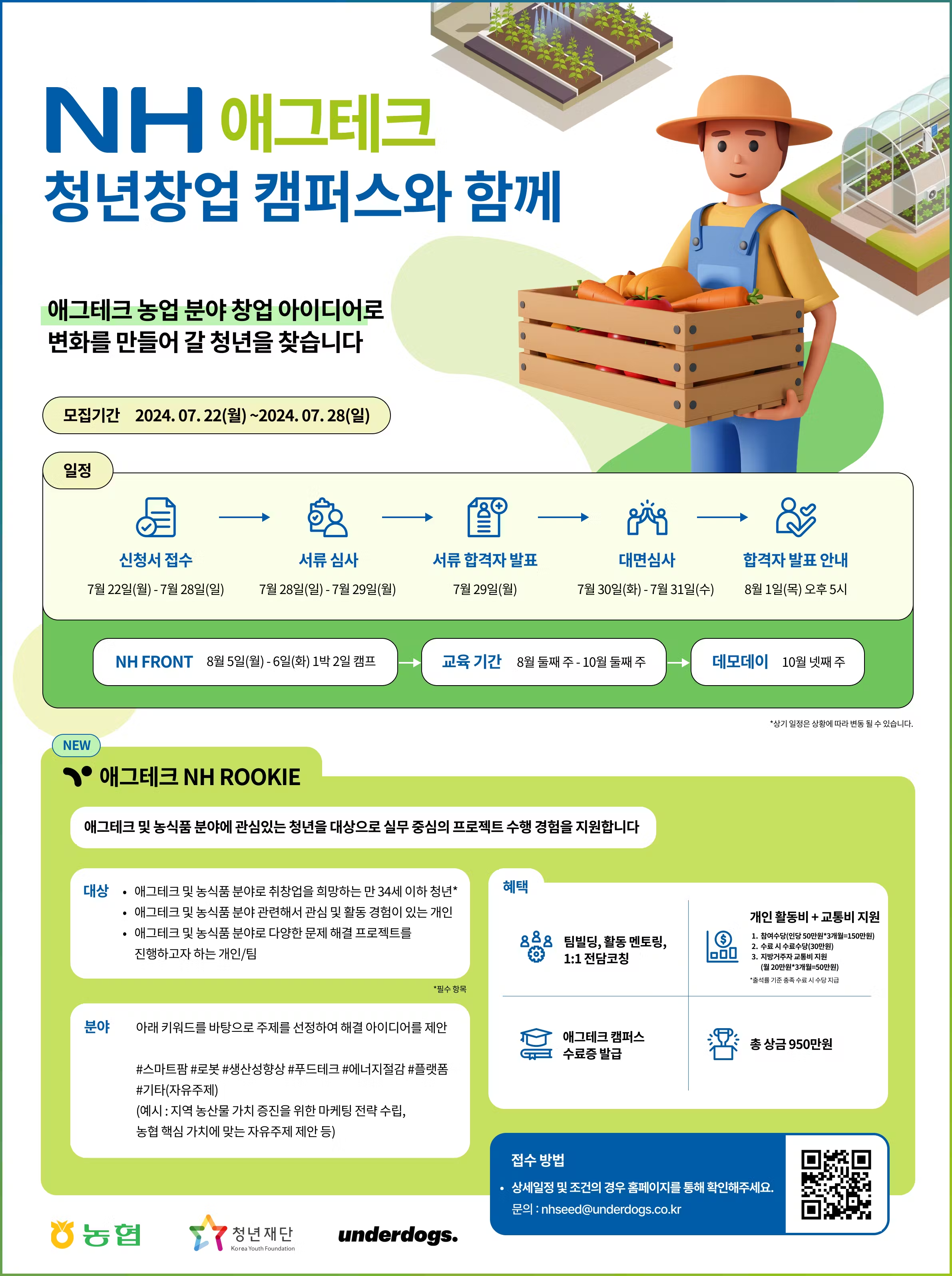 NH 애그테크 청년창업 캠퍼스에서 애그테크 및 농업 분야에 대한 프로젝트를 경험해보고 싶은 청년들을 찾습니다! 👀✨